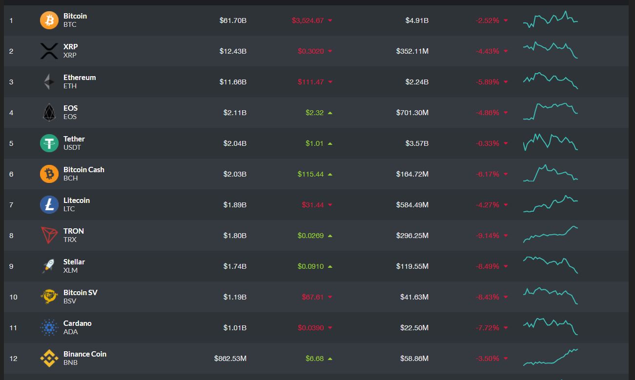 aren’t faring much better. In fact, alternative crypto assets have posted more extreme losses than , down 2.3% in the past 24 hours. Per data from Live Coin Watch (seen below), most notable , save for Tether (USDT) has underperformed substantially. , , , and have all posted losses in the 4% to 5% range, while other assets, like , have found themselves down by nearly double-digit percentage points.