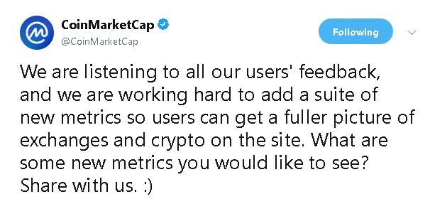 In response to people’s concerns, CoinMarketCap responded,