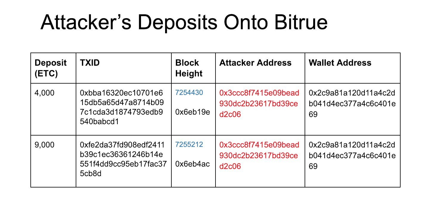 The attack was confirmed by Bitrue exchange on a Twitter thread which details how they noticed 13,000 double spent ETC on their platform. Bitrue confirmed that they stopped the attacker from withdrawing his funds.
