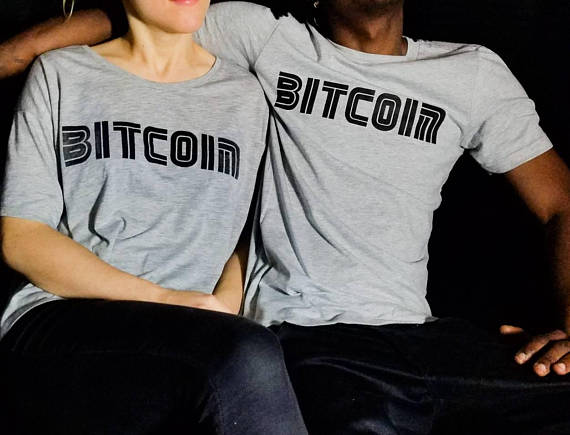 Matching BTC bitcoin t-shirts for him & her. A lovely one size fits most crop tee for the lady and a handsome silver t-shirt for the lad. Join the blockchain revolution!