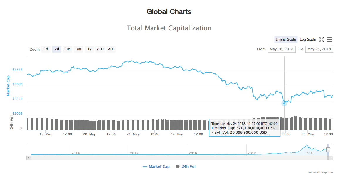 Total market cap is at around $337 bln, up from it’s intra-weekly low of $320 bln.