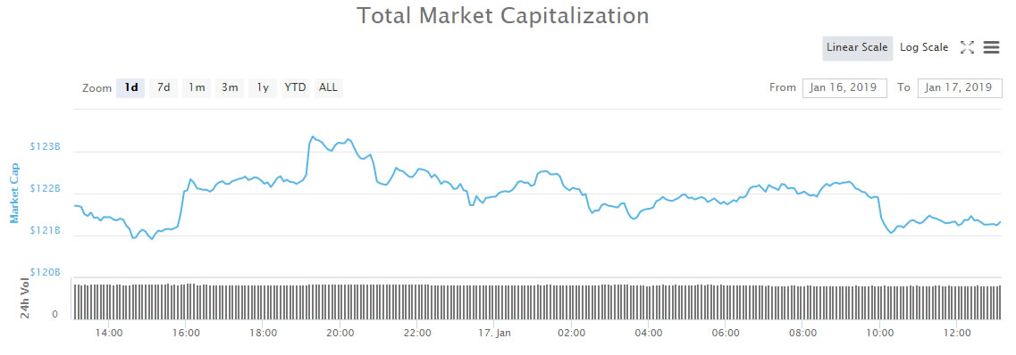 There has been very little movement in crypto markets over the past 24 hours. No further dumps have been initiated which has kept total market capitalization just above $120 billion for another day.