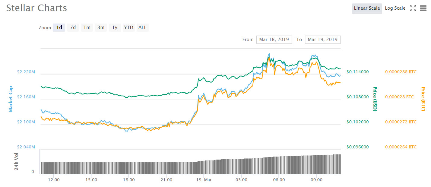 The news has enabled XLM to flip and Tether to take seventh spot with a market cap of $2.2 billion at the time of writing. Stellar has made almost 20% this week climbing from below $0.10 to a high of $0.117 before pulling back a little. Volume has risen from $155 million to $257 million as Stellar climbs the charts.