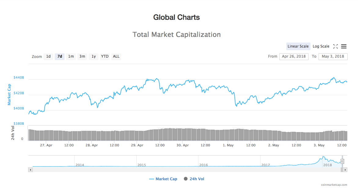 Total market cap is well above $400 bln, around $444 bln by press time.