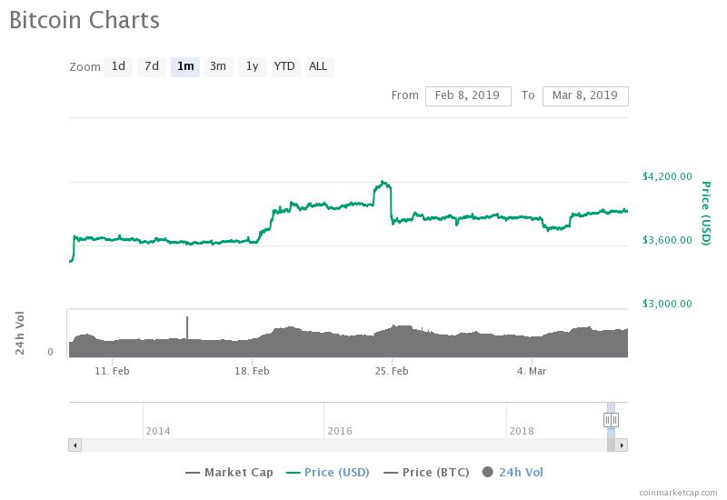 Since February 7, for over a month, bitcoin has remained in a tight range from $3,600 to $3,900.