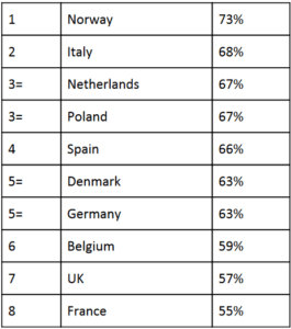 Respondents in Norway were most optimistic with 73 percent confidence that cryptocurrencies will still exist in ten years. Even the least optimistic nation, France, still reported a majority support for crypto at 55 percent.