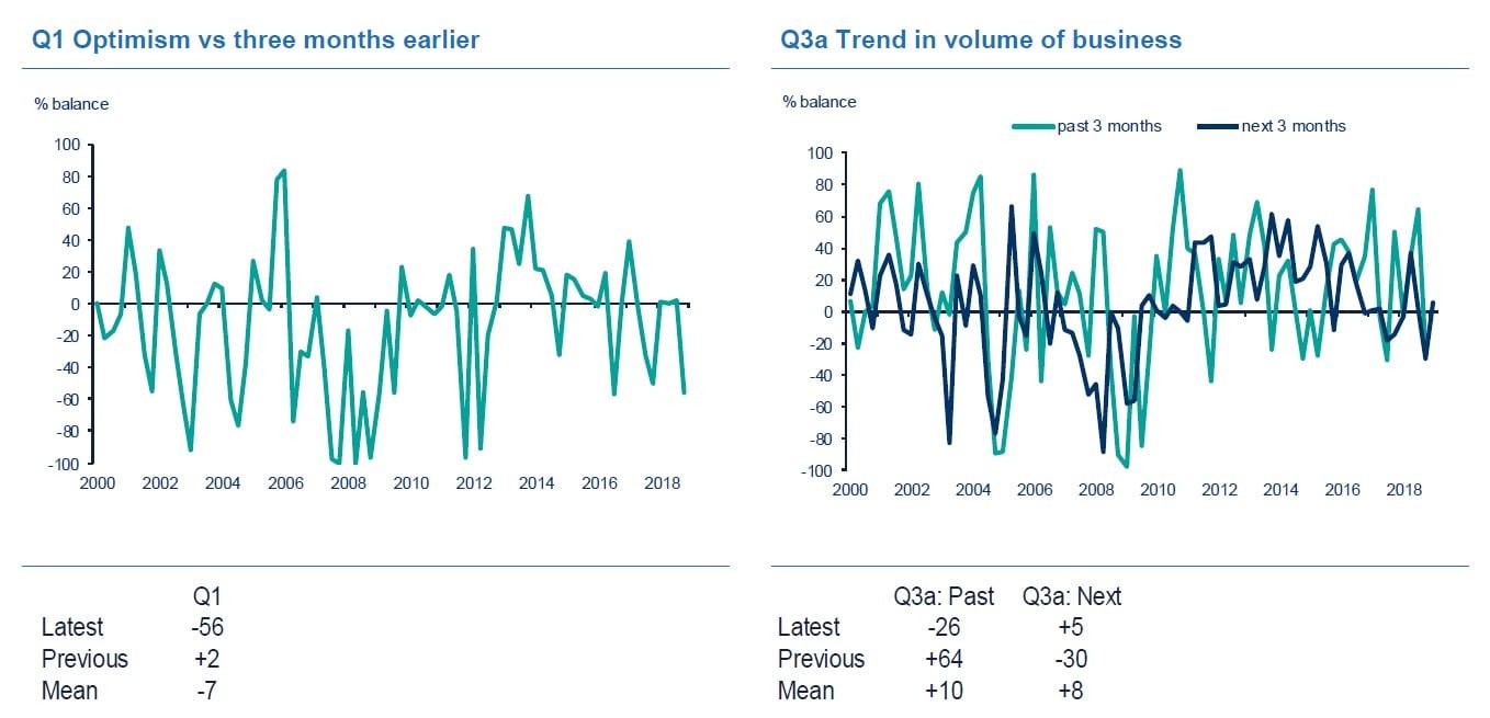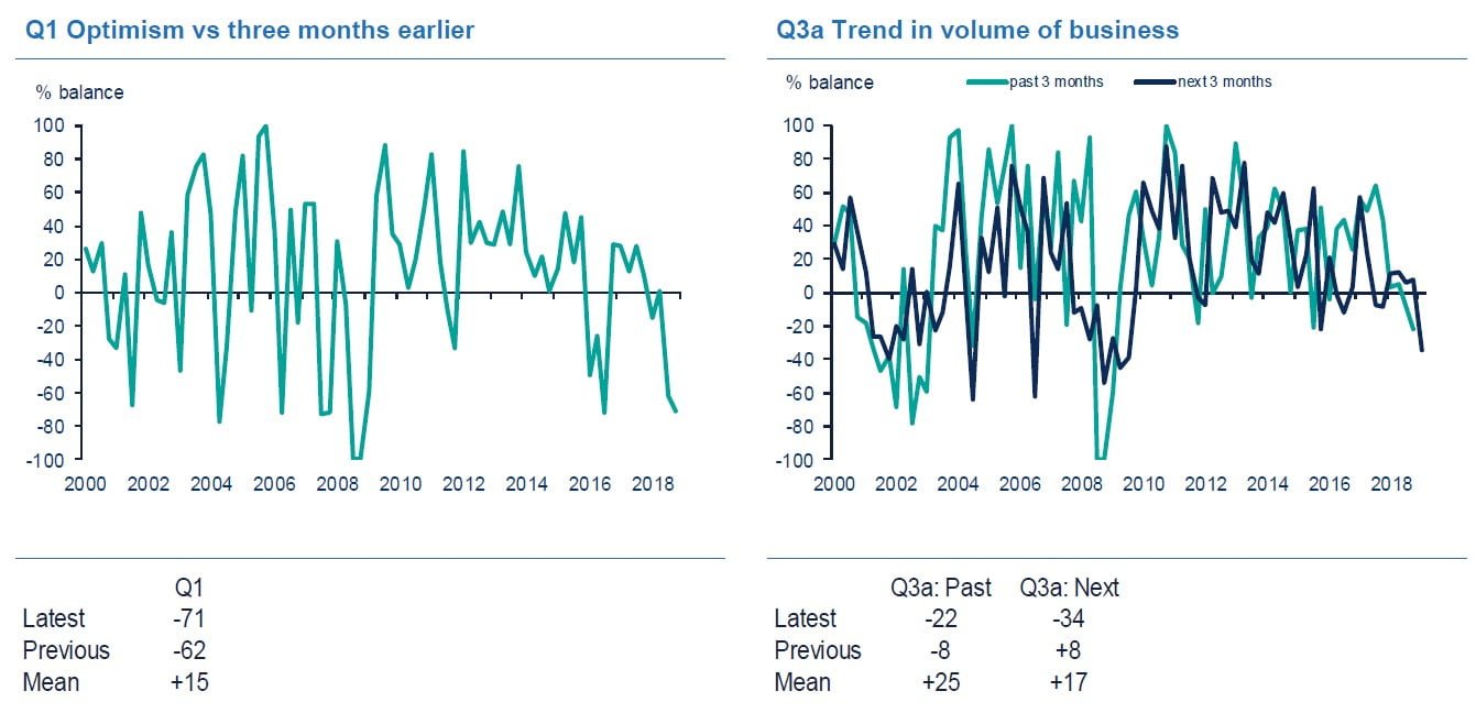 “A combination of macroeconomic and Brexit uncertainty, regulatory compliance and global market volatility are taking a toll on the UK’s financial services sector. Financial services are a bellwether for the wider economy. The persistent weakness in optimism and the deterioration in expectations sound a warning for the outlook.