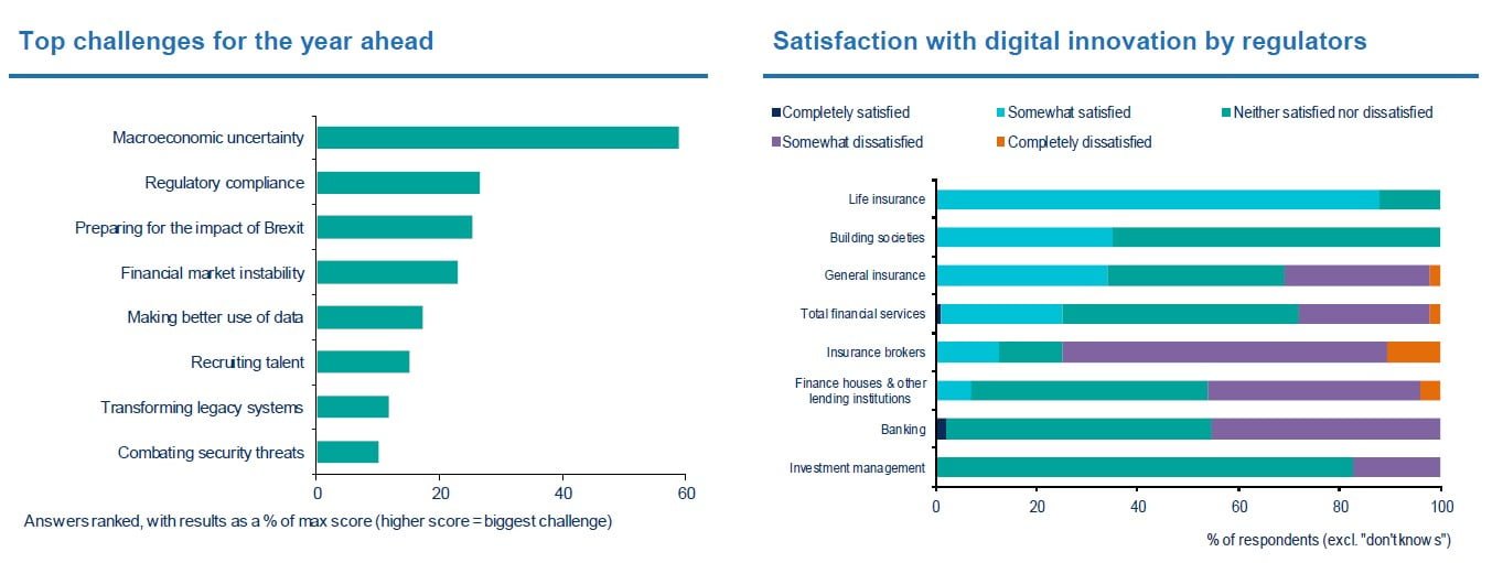 - The most important challenge facing financial services firms over the year ahead is macroeconomic uncertainty (59% of maximum score achievable in a weighted ranking of challenges)