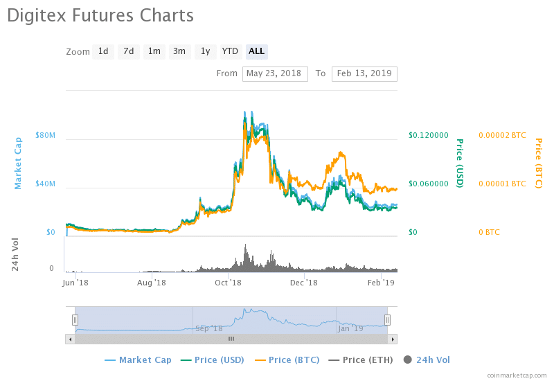 The DGTX has also proven its worth as an investment token as well as an exchange token, going on a mini bull run of its own in October 2018. Going against the bearish trend of all major coins, Digitex soared to over 14 cents trading price before following the general trend of the market.