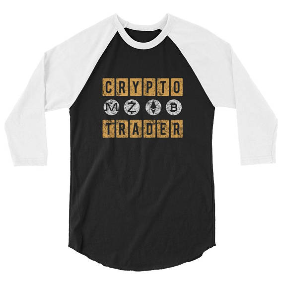 Distressed Crypto Trader Vintage bitcoin 3/4 Sleeve Raglan Baseball T-Shirt: This vintage looking crypto trader shirt is perfect for anyone who's in love with cryptocurrency trading & investing!