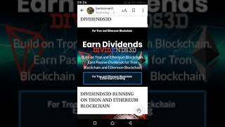 Dividends3D is a blockchain based investment platform for passive incomes; Dividends3D is a dAapp platform running of tron and ethereum blockchain. Dividends3d is a kind of platform that once you hold their token, you will be receiving a dividends from the fees accumulated from the transaction done on the platform.