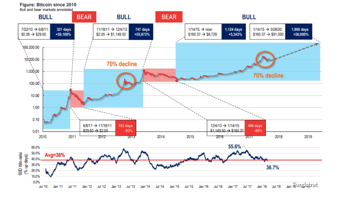 bitcoin market cycles since 2010 | Source: Fundstrat via MarketWatch