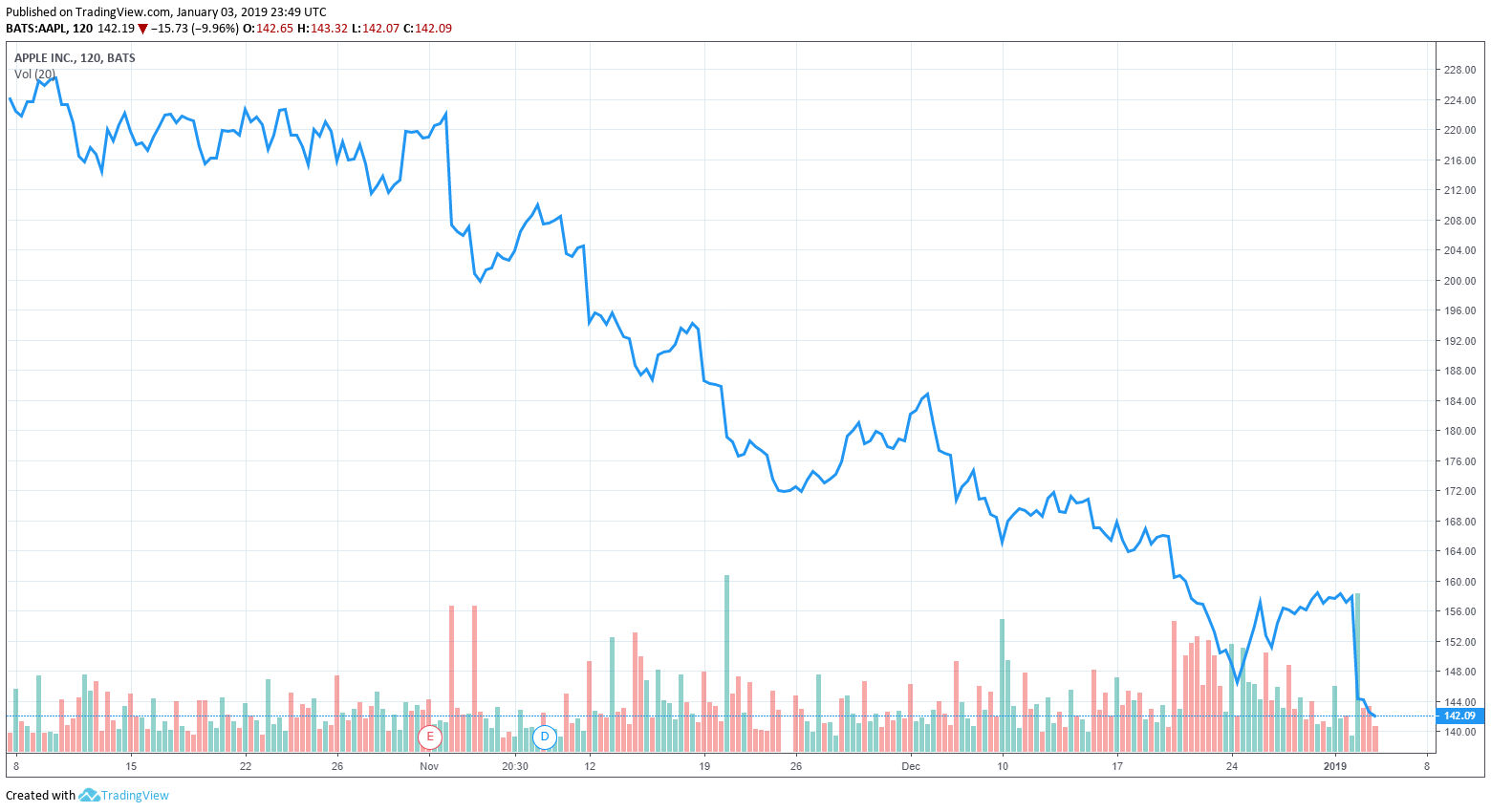 Sales of the iPhone in China’s contracting economy are in part being blamed for Apple’s revised first quarter forecast and the sheer snowball effect to the stock market today. After the performance of FAANG stocks in the last quarter of 2018 a bad year for the stocks of technology giants like Apple, Facebook and Google is