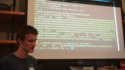 Vitalik Buterin test codes (illustrates) one of the features of Caring Currency using Etherium.