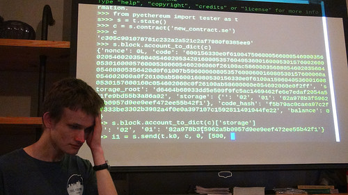 Vitalik Buterin test codes (illustrates) one of the features of Caring Currency using Etherium.