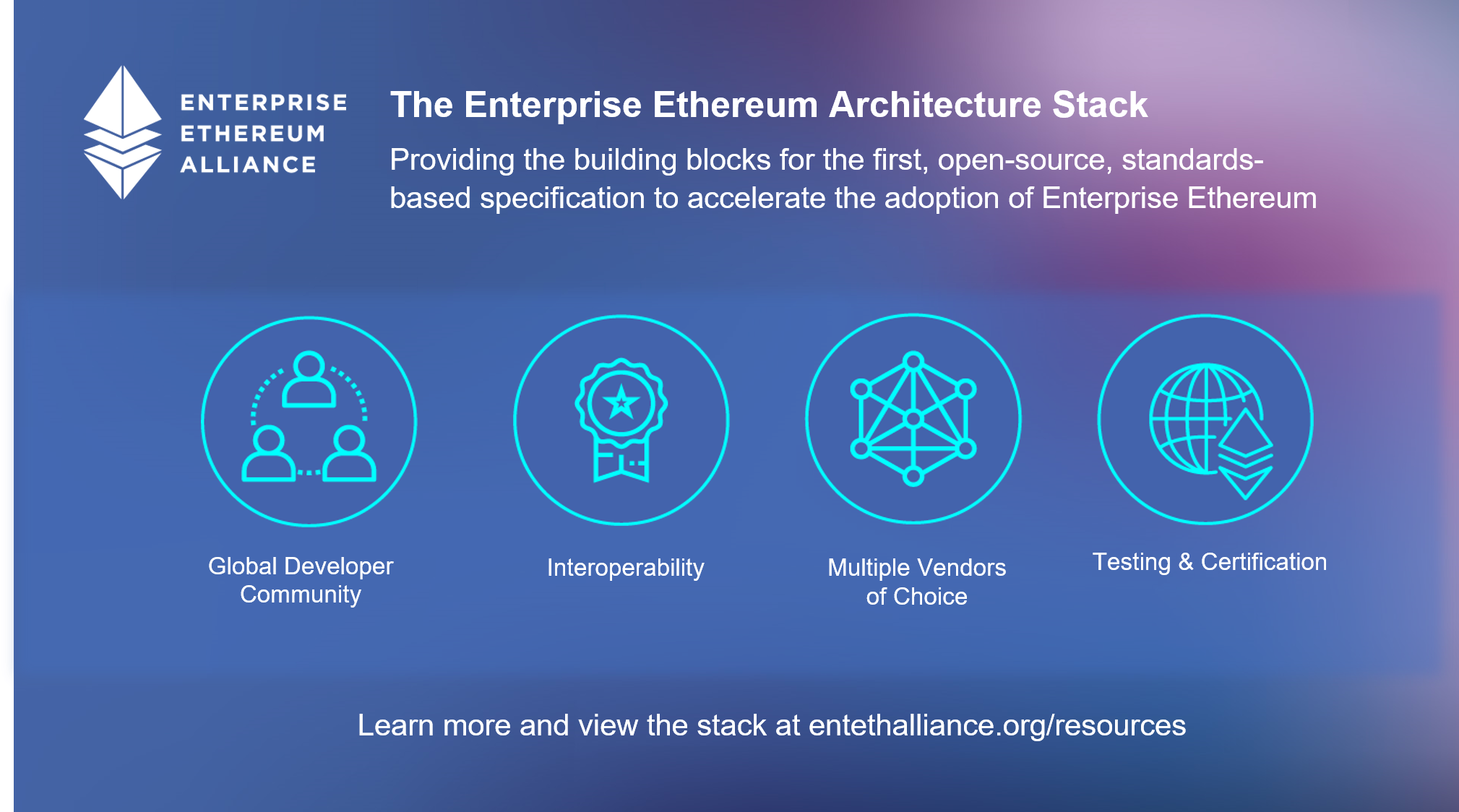 Today’s publication of the enterprise ethereum architecture stack will be followed “very shortly” by the spec, Resnick said. That, in turn, will be followed by a testnet and after that comes the establishment of a certification program.