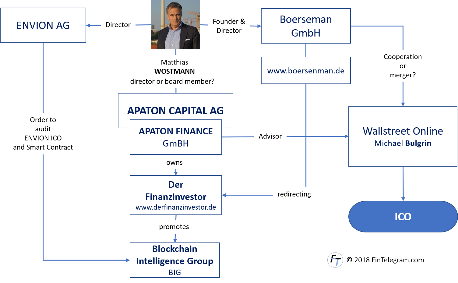 Woestmann is as a director of the Apaton Group, although his name has now been removed from the official company website. Apaton announced a with BIG in April. BIG was promoted in the investment letter Der Finanzinvestor, and , a domain allegedly owned by Woestmann, redirects to Der Finanzinvestor, linking him to the company and demonstrating his role in the establishment of BIG through multiple channels.