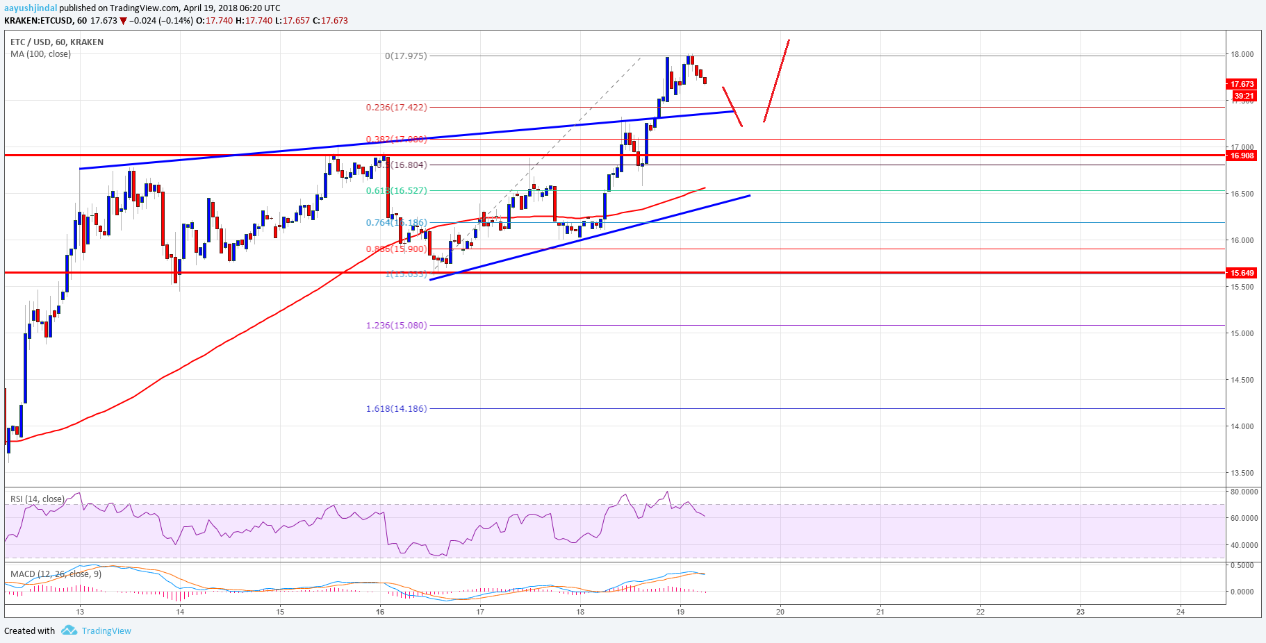 Ethereum classic price is poised to extend gains against the US Dollar and bitcoin. ETC/USD is likely to move past $18.00 for a test of the $20.00 handle.