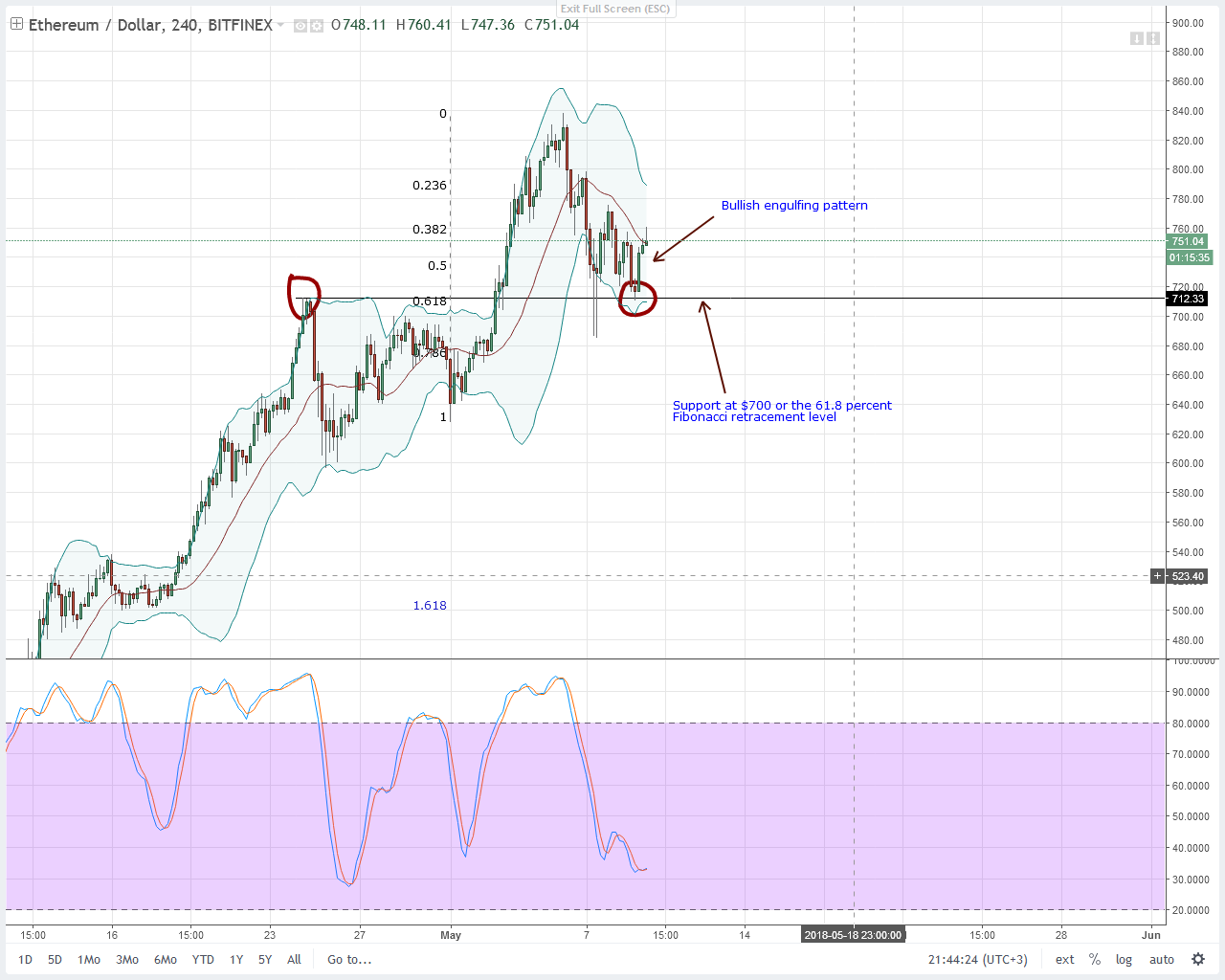 In the 4HR chart, Ethereum bulls are picking up at previous resistance levels now support at $700. Besides, even though it is not perfect, a stochastic buy signal is in progress and likely to print after this candlestick prints. Now, the reason why I shall be recommending longs is the sequence of events in the last 24 hours or so.