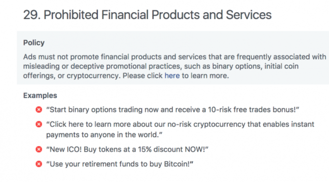 Facebook is firing back against misleading and deceptive ad practices, and ICOs, cryptocurrencies and binary options are at the top of their list. by Facebooks’ Rob Leathern, the social media giant is trumpeting a new policy, banning ads that “promote financial products and services that are frequently associated with misleading or deceptive promotional practices.”