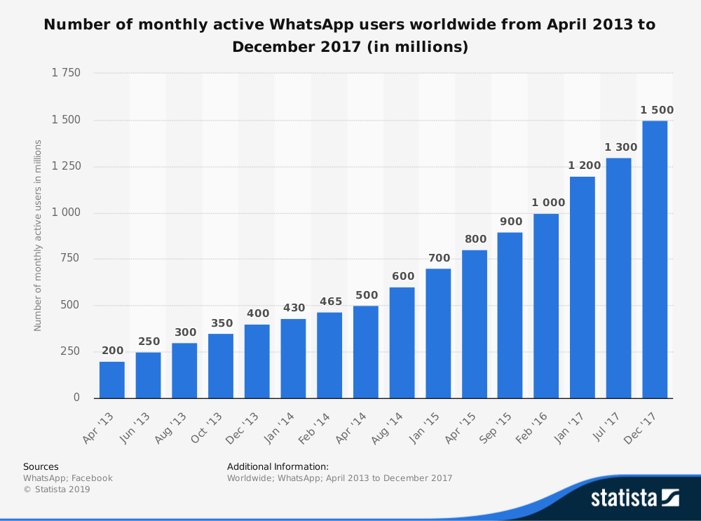 WhatsApp’s 1.5 billion active users could soon have access to Facebook’s cryptocurrency. | Source: Statista