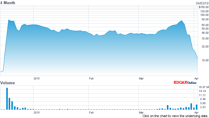 Longfin in a public to the SEC on April 2. Longfin shares closed 30.89 percent lower today, trading at $9.89 a share. This year so far the stock is down by 82.43 percent.