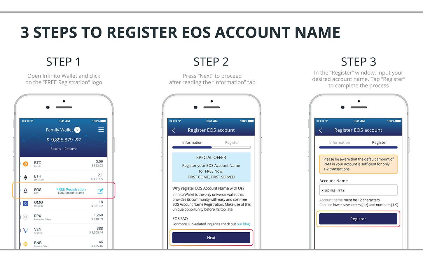 Infinito Wallet plans to offer additional EOS unique features such as self-registration, staking, unstaking, purchasing and selling RAM.