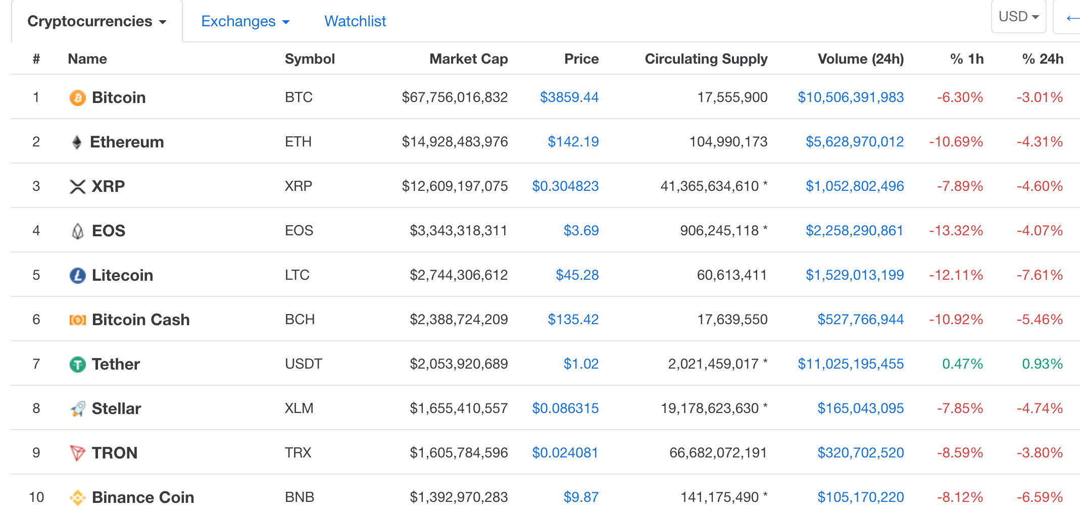 bitcoin, at press time, was trading at $3876 recovering after hitting a low at $3853 [BTCUSD:BITFINEX]. bitcoin plunged from trading at $4200 to the low price of $3800 in just under an hour. Heavy trading volumes from Bitmex, was reported by CoinMarketCap.