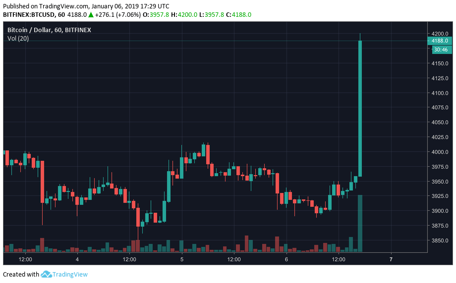 With the final announcement for BTC for the year of 2018 made by the biggest institutional player, Intercontinental Exchange’s Bakkt, the coin is currently witnessing a massive push in terms of price. The coin has jumped from trading below the $4000 mark to above the said mark within a matter of minutes.