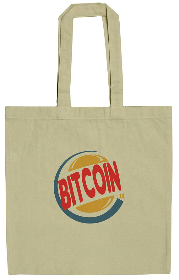 Funny Bitcoin King Burger Parody 15 Inch Canvas Tote Bag