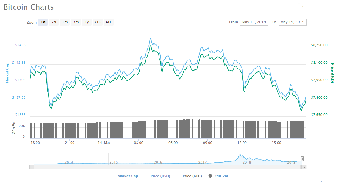 The bitcoin price took a breather today. | Source: CoinMarketCap
