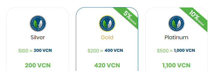 The token is not listed on any yet, as its ICO is ongoing. The base rate for ICO VCN tokens is 50 cents, with slight discounts if you buy more.