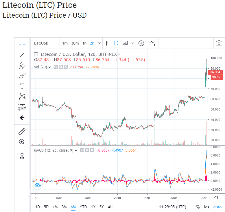 Meanwhile, Charlie Lee has become a master promoter of the project. He’s inked deals with the likes of the UFC, Glory Kickboxing, TokenPay/WEG bank, Beam cryptocurrency, Mammoth Film Festival, and more. Upcoming catalysts include a halving that’s planned for August 2019, and the aforementioned confidential transactions, not to mention the increasing integration of the Lightning Network for greater scalability.
