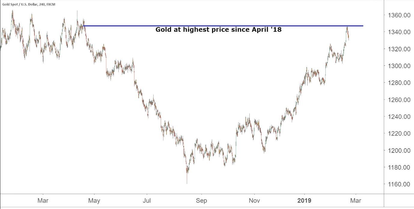 This week we cover the price movements of gold, silver, , palladium, the US Dollar Index, the DOW and more on Golden Rule Radio. We have gold at a 10 month high. We look ahead at the possible direction and levels the gold price in 2019 could hit. We’ll then look at the silver price in 2019 alongside platinum and palladium prices.