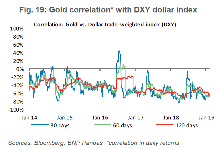“Purchases in 2019, in view of potential dollar appreciation, are likely, we believe, to be kept at same rates,” BNP Paribas analysts wrote. “Coupled with investor interest, gold may well get the demand support in our opinion that will allow [it] to sustain an advance in price.”