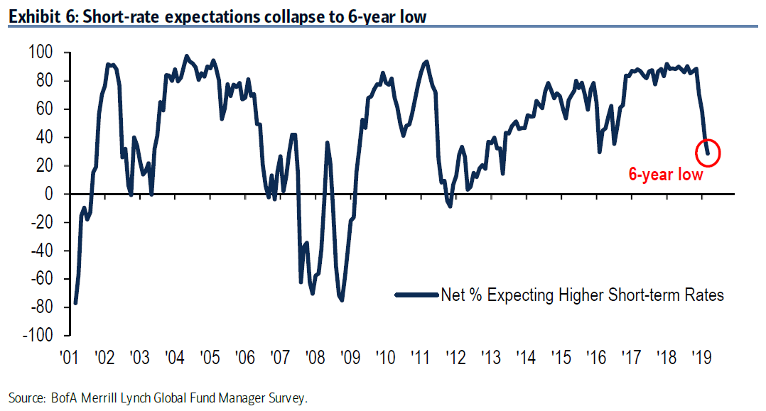 Only 13% are expecting higher global rates in the short term. That’s the lowest reading since August 2012.