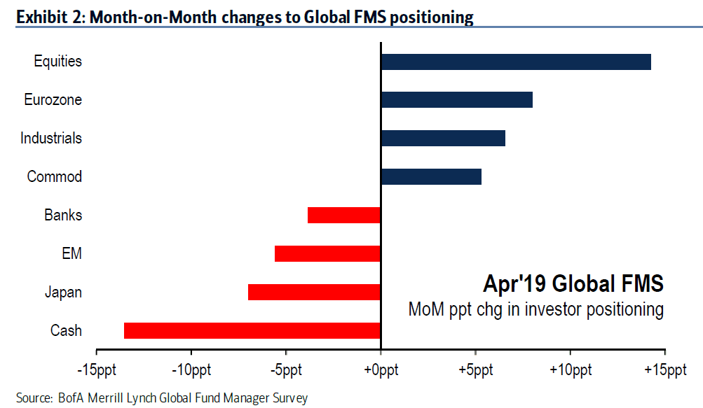 Further, Hartnett said allocation to global bank stocks is now down to its lowest level since September 2016.