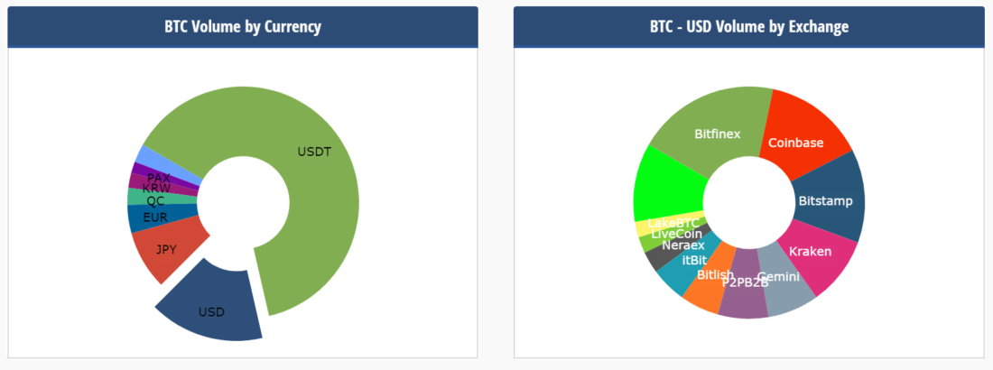 Market share of the global bitcoin exchange market, data provided by CryptoCompare