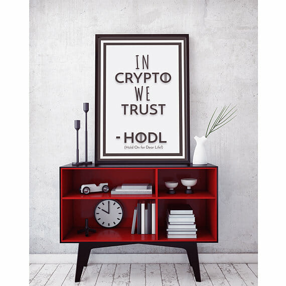 This In Crypto We Trust – HODL (Hold On For Dear Life) is a digital file which you will purchase. The files can be printed at your local professional printer or at home.