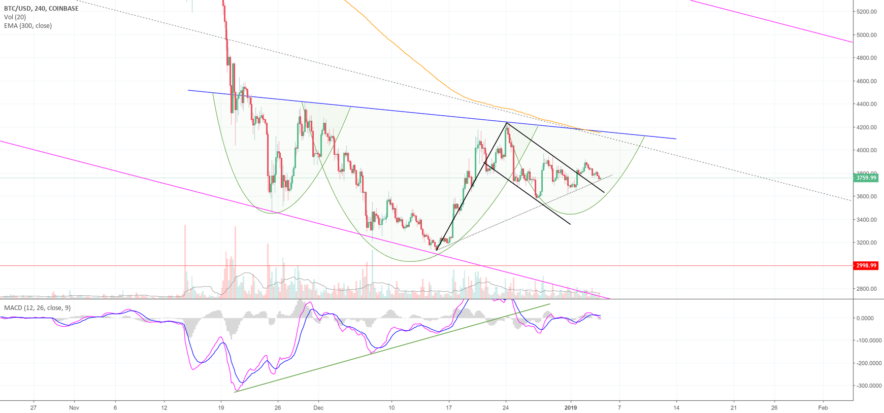 Just to clear up any questions, I am definitely still long term on the crypto space, even if we do see a failure of the inverted pattern. As I’ve said on numerous occasions, I do not believe that the bear market is over. What does that mean? Well, to me it means that even if we rally substantially off of these levels (say up to the low 5000s) I still believe that price is likely to then head back to the downside, as we enter a long sideways consolidation period in the market. At some point we are likely to start grinding mostly sideways, and that could persist for a couple of years. That’s the most likely way that we will see the final stages of this bear market. With that said, I also believe that crypto will have another powerful bull market after that consolidation period. For now, we have to continue to monitor this whipsaw action in , to see what direction it will finally break to. So, keep an eye on the top of the , the neckline (in blue,) the 50 (in orange,) and the December 27th low of 3567 on the downside.