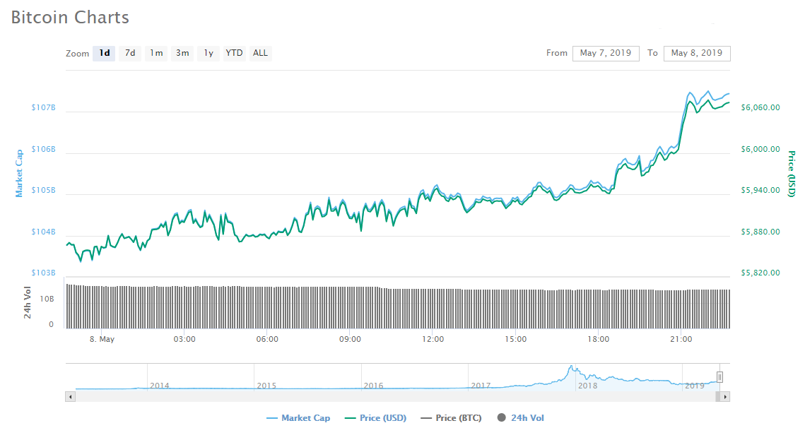 bitcoin has broken critical resistance at $6,000. | Source: CoinMarketCap
