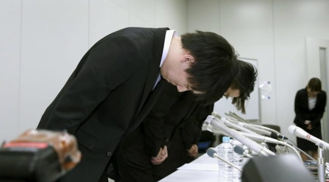 Coincheck executives apologizing for the exchange’s breach.