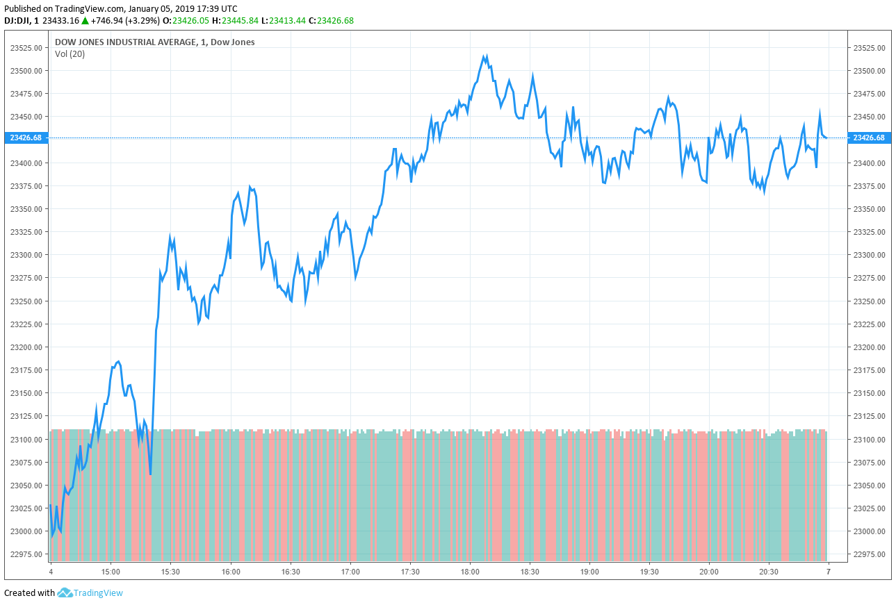 Markets subsequently experienced a surge. The Dow Jones index closed 746.94 points higher for a daily gain of 3.29%.