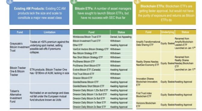 The launch of Cboe bitcoin futures in December 2017 elevated the digital currency into the circle of mainstream finance, and many believe, it set the stage for the launch of bitcoin ETFs. As a result, many financial institutions are now the SEC’s approval to launch bitcoin ETFs.