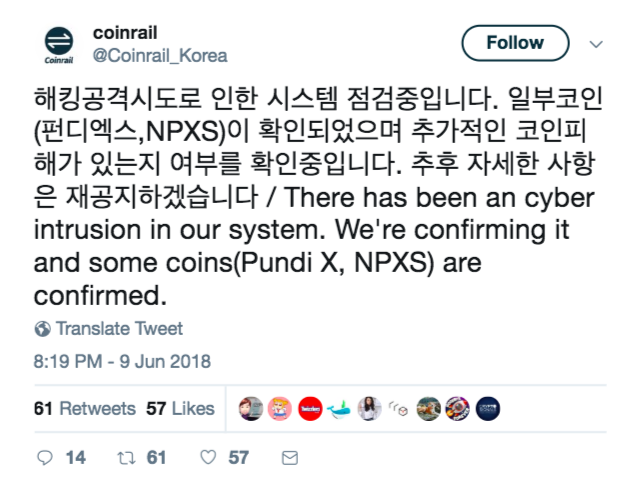 It began with the Coinrail hack on June 9. At the time, the popular South Korean cryptocurrency exchange tentatively announced a “cyber intrusion” that saw the loss of worth of cryptocurrencies.