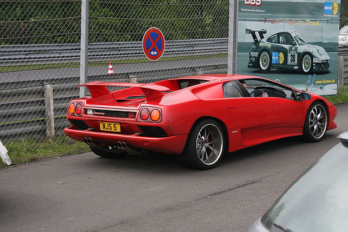 The lambo with its silly wing parked awaiting some action on the North circuit