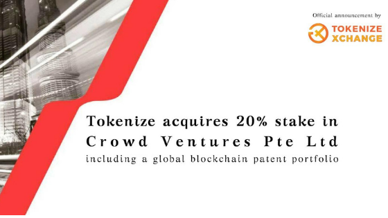 Finally, Tokenize has also acquired a 20 percent stake in Singapore-based technology company, Crowd Ventures, to cement its stance on the future of blockchain for everyday use. As blockchain technology evolves to encompass more facets of our digitally-connected lives, the importance of Intellectual Property (IP) as a business asset will be understood by more technology companies. Tokenize and Crowd Ventures see the intrinsic value of owning blockchain patents and are working together to have patents internationally recognised to achieve this objective.