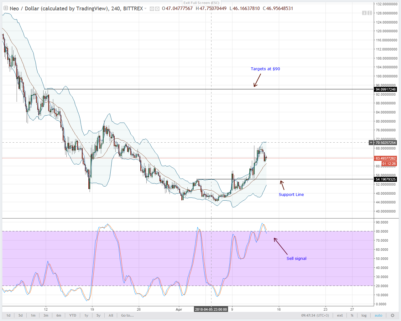 NEOUSD 4HR Chart from Bittrex for April 14, 2018