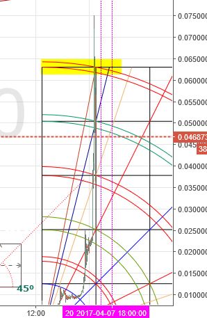 Here is the 3 hour chart for litecoin. As you can see, the 2nd arc, of the 2nd pair, stopped the rally and then stopped it on the 2nd test of the same arc more recently. However, barring an unexpected reversal in the next 10 minutes, price will finally close above the arc pair, suggesting a buy signal on the 3 hour chart. Resistance is seen in the $13 area.