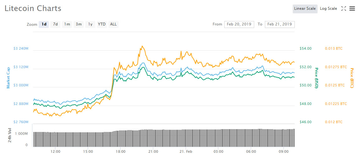 Litecoin has become the darling of the cryptocurrencies again as it out performs the majority of the top coins including its big brother, bitcoin. Breaking a psychological resistance level of $50 a few hours ago, Litecoin is one of the day’s best performing crypto assets once again. The question is, how far can it go this time?